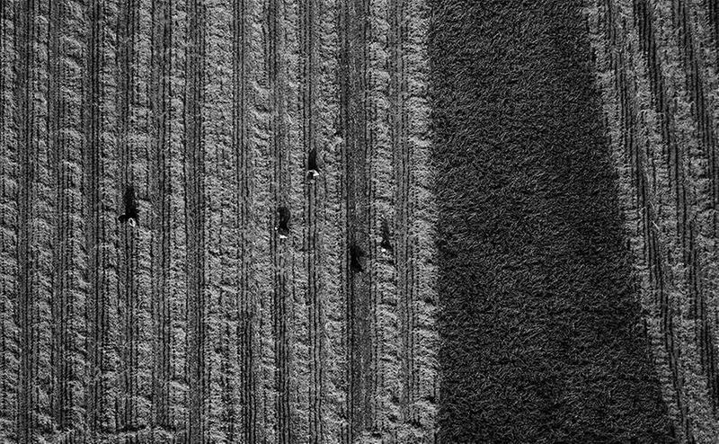 近日,有着“陕北好江南”之称的陕西延安南泥湾千亩水稻迎来收获季,田间地头稻浪滚滚,一派丰收景象。图为农民在陕西延安南泥湾稻田里捡拾稻穗。