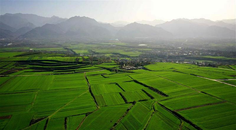 初冬时节,陕西西安长安区神禾原上满眼新绿,初生的冬小麦生机盎然,像张张绿毯铺展在大地上。图为神禾原冬小麦。