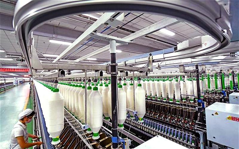 今年前10月,咸阳纺织集团有限公司攻坚克难,保持了生产经营水平稳步提高,实现销售收入6亿多元,同比增长11.29%;出口创汇1000多万美元,同比增长55.21%。图为工人在一分厂细纱车间细纱工序上作业。