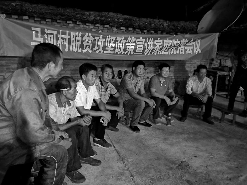 “C级危房改造户每户补助不超过1.5万元,D级危房改造户每户补助3万元,贫困户生态护林员每月工资600元......”四皓街道马河村第一书记赵深在群众院落会上向群众宣讲政策。