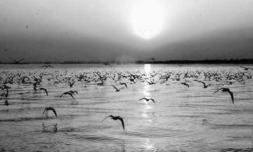第二天上午,见到了沙湖上灿烂温暖的朝阳,映着湖波,闪闪烁烁。小艇划破平湖潋滟,“舟遥遥以轻飏,风飘飘而吹衣”,望眼云影波光,秋风满湖,苍苍蒹葭,瑟瑟芦荻,塞上的秋风吹拂着她们,芦苇丛似乎发出阵阵的歌吟。沿着湖岸走去,莲花虽谢,仍在湖水中向世间展示着顽强的风姿,莲蓬挺立,在风中微微摇曳,似乎在向着高扬的芦花打着招呼。几只不知名的水鸟沐浴着阳光,在湖水里气定神闲地栖立。沙湖也是全国闻名的湿地,如果再早些时候,可以观赏到白鹤、黑鹤、天鹅、黑颈鹤等珍稀鸟类,此刻,它们都已经迁徙了吧?