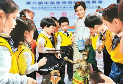 泉州小朋友与意大利小朋友同台表演木偶。陈悦 摄