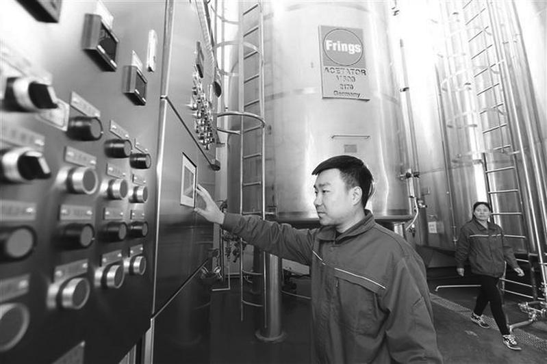 位于岐山县凤鸣镇五里铺村食品工业园内的太公醋庄,总投资1.1亿元,年产优质高端食醋2万吨。项目全部建成后可实现年销售收入1.3亿元,安置剩余劳动力50多名。图为技术员在操作德国福林斯醋液发酵电脑控制台。