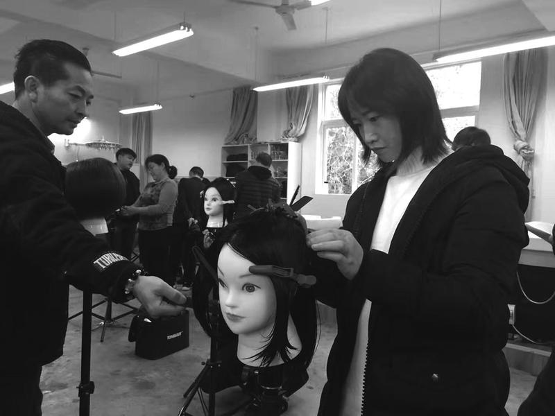 近日,参加紫阳县第一期免费美发培训班的学员正在认真开展实践操作。据悉,该县从2014年起,围绕“村村有致富产业、家家有致富门路、人人有致富技能”的目标,探索推行“党政主导+龙头带动+基地培训+定向就业”的技能脱贫模式,狠抓修脚足浴、特色烹饪、家政月嫂、电子商务、建筑劳务、美容美发等免费技能培训,实现由“输血”向“造血”的转变。2014年以来,全县累计开展技能培训3.4万人。