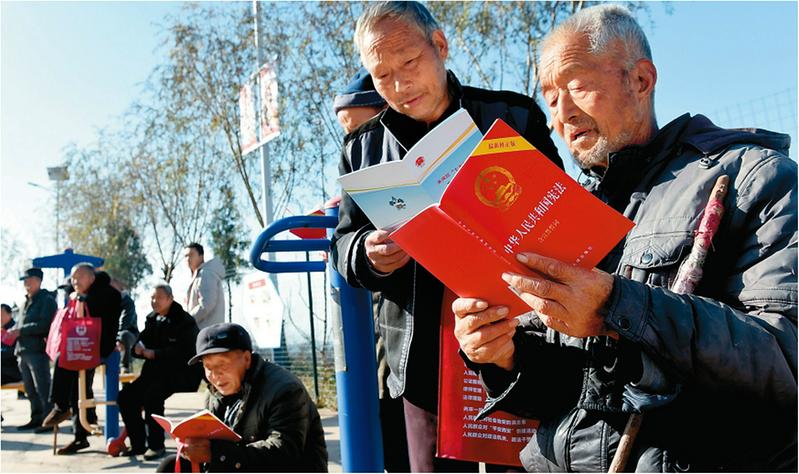 12月4日是第六个【国家宪法日】,未央区司法局、未央宫街道在对口帮扶的蓝田县马湾村开展【宪法进农村】主题活动。图为村民群众认真阅读《中华人民共和国宪法》。