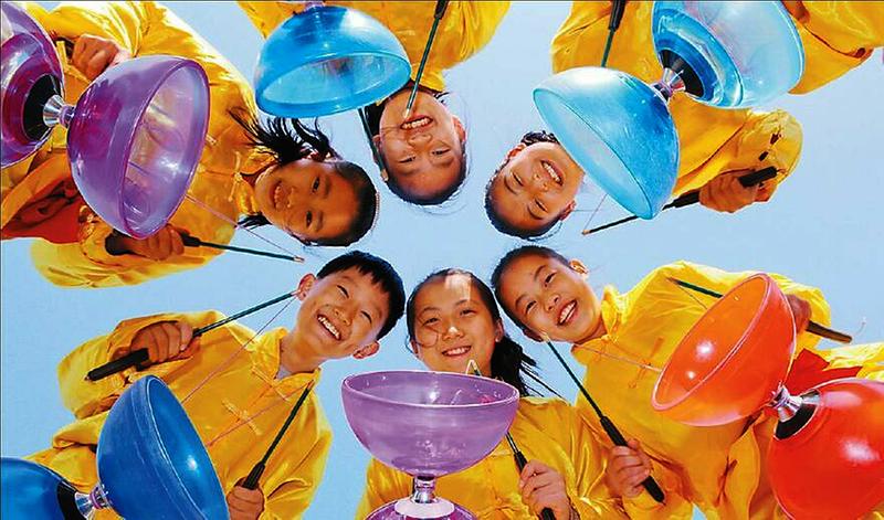 抖空竹是国家级非物质文化遗产代表性项目。山东省东营市东营区弘文小学把抖空竹作为特色课程引进校园,成立兴趣小组,并聘请当地抖空竹传承人定期到校传授技艺。图为4日,学生在表演“空竹操”。