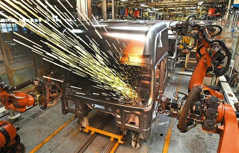 进入12月,陕西汽车控股集团有限公司全员鼓足干劲,拼抢12月,全力以赴保订单,保质保量满足市场需求。前10月,陕汽累计实现汽车产销15.4万辆,同比增长6%,预计全年汽车产销将突破18万辆。图为工业机器人在陕汽车身厂驾驶室总成装焊接生产线上作业。