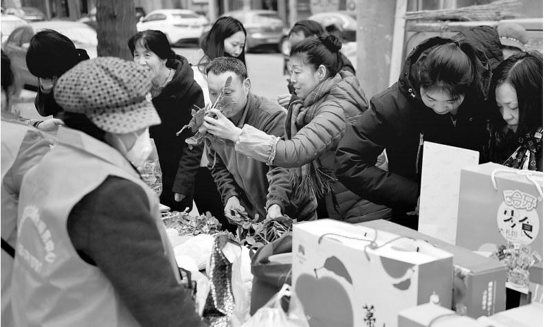 草莓、苹果、蜂蜜、芝麻酱……近日,20余种特色农副产品“走”进莲湖区龙首原社区,吸引了众多群众踊跃购买,鸡蛋、石子馍、手工挂面等特色农副产品一度出现供不应求的场面。图为物美价廉的特色农副产品吸引了众多社区群众前来选购。