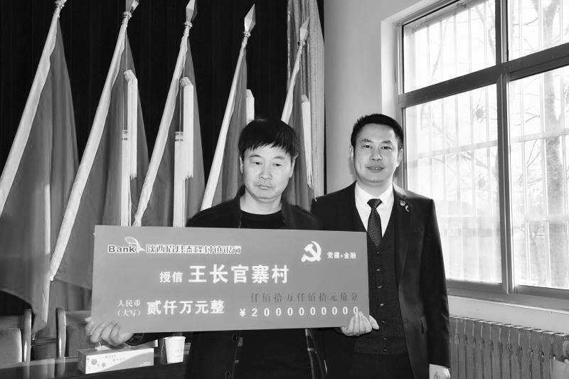 2019年12月16日下午,眉县首善街办王长官寨村党员任斌欢欢喜喜地从眉县泰隆村镇银行行长张仙中接过“党员先锋贷”授信支票,同时,授予该村为党建+金融示范基地。
