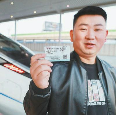 16日,旅客在贵阳北站展示成贵高铁C6008次列车车票。刘续 摄