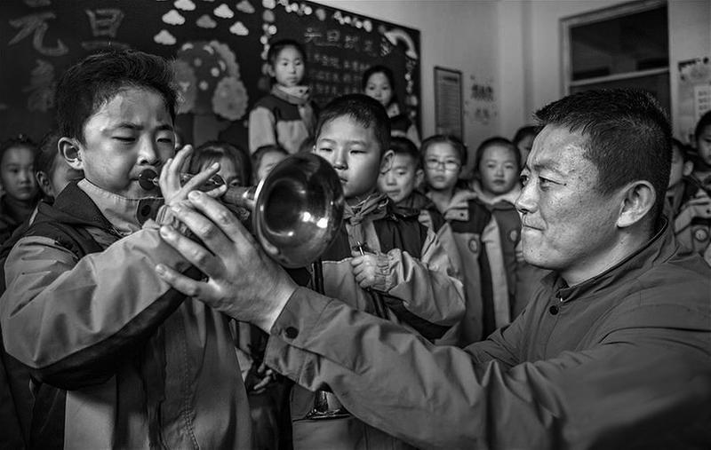 近年来,陕西省延安市志丹县城关小学积极开展科技、劳动、音乐、绘画、诵读经典等兴趣团队活动,并将腰鼓、剪纸、民歌、唢呐等地方文化纳入校本课程,让孩子们在各项活动中发挥特长,展示自我。图为志丹县文化艺术培训中心唢呐演奏员贾鹏程(右一)在城关小学传授唢呐技艺。