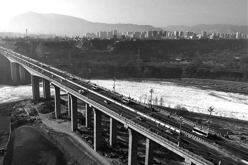 这是2019年12月31日拍摄的川海大桥(无人机照片)。当日,连接甘肃、青海两省的川海大桥正式通车运营。川海大桥位于甘肃省兰州市红古区与青海省海东市民和回族土族自治县交界处的湟水河上,全长1656米、宽31米,按照二级公路标准建设,为双向六车道,全线设计行车速度每小时40公里。