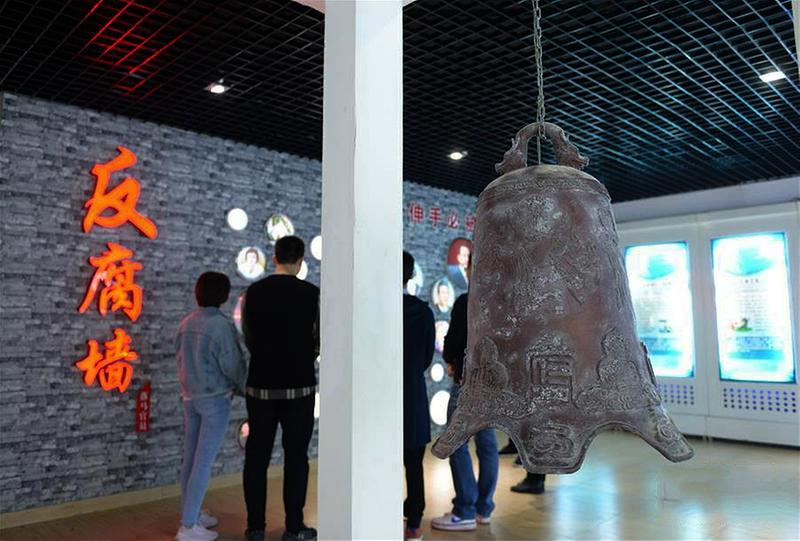 12月17日,党员干部在福建省福州市闽清县反腐倡廉警示教育中心参观。