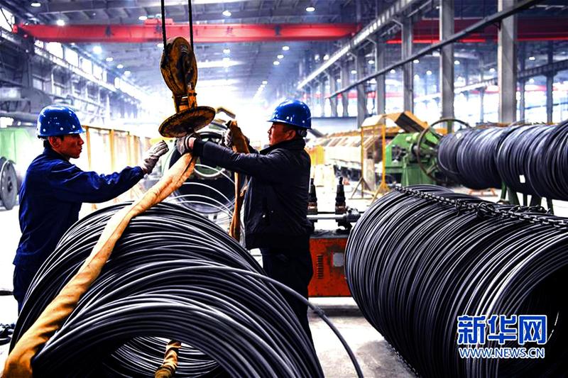 汉中禹龙科技新材料有限公司年产10万吨混凝土用钢丝钢绞线,新增就业岗位150余个,实现利税3000多万元。近年来,陕西省汉中市勉县坚持循环发展理念,以周家山循环经济产业聚集区、褒城新型材料产业聚集区和中小企业孵化园为依托,全力推动工业转型升级。图为员工将钢筋进行物理冷拔处理。