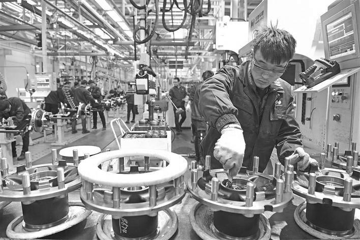 陕西汉德车桥有限公司宝鸡中轻卡车桥基地是陕西省300万辆汽车工程建设和宝鸡市千亿汽车产业发展的重点项目之一,总占地面积500余亩,项目设计总产能33.5万根/年,总投资72388万元,是国内最先进的中轻卡车桥产业基地。据了解,自去年3月下旬,宝鸡中轻卡车桥基地第一条前轴装配线投入使用以来,各项经营指标均创历史新高。截至去年12月30日,已生产销售桥总成15.2万根,销售收入突破10亿元。图为工人们正在前轴装配线上紧张作业。