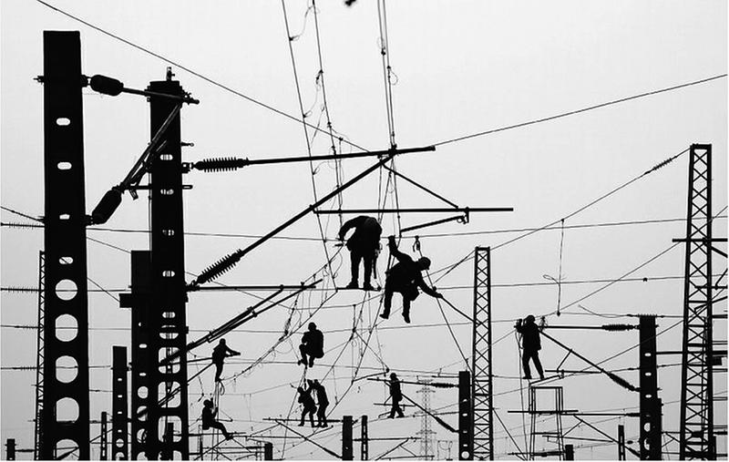 1月7日,在西安市临潼区新丰镇,西安火车站站改扩建工程新丰至窑村段增建二线线路,在中铁七局千余名铁路建设者的奋战下全线贯通。该线路全长23.1公里,开通后将有效缓解全国铁路重要枢纽——新丰镇车站的紧张状态、扩充陇海线运能、畅通入川货运通道、缓解北煤南运压力,为即将开始的春运提供保障。图为中铁七局的铁路建设者在进行铁路线路接触网施工。