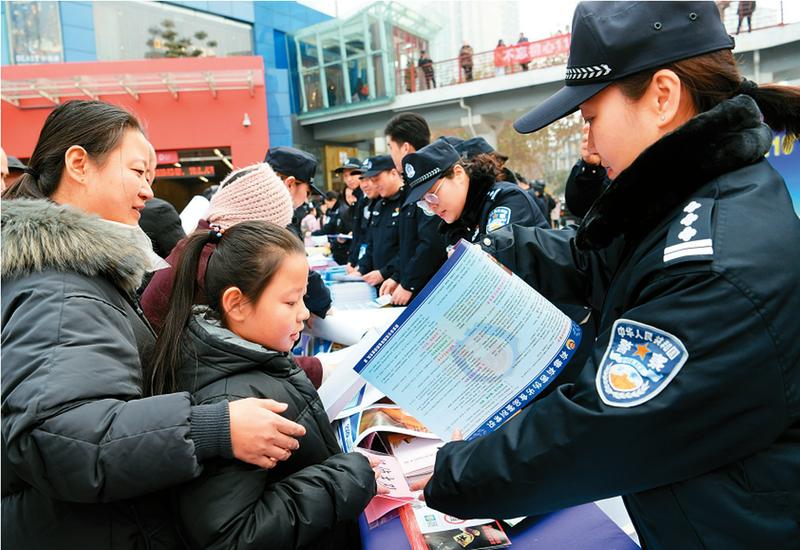 今天是第34个全国“110宣传日”,近日,公安雁塔分局在小寨赛格广场举行宣传活动,向市民群众宣传“110”及反恐知识。活动现场,西安市公安局、公安雁塔分局相关部门各警种依次排开,通过展板展示、发放宣传单、现场解答等方式,向在场群众普及平安建设、扫黑除恶、防范电信诈骗、预防“套路贷”等知识。图为民警向过往群众宣传安全防范知识。