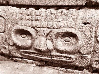 “大台基南护墙处最为重要的发现是70余件精美石雕,石雕多数出土于墙体的倒塌石块内,部分还镶嵌在南护墙墙面上。绝大多数为雕刻于石块一面的单面雕刻,少量为双面,以减地浮雕为主,还有少量阴刻、圆雕。”据考古专家介绍,石雕的雕刻内容大致可分为“神面”、人面、“神兽”、动物和符号五类,其中“神面”石雕体量较大,雕刻最为传神。单面浮雕多为对称式构图,最大者长度超过2.6米。圆雕为椭圆形柱体,立于夹道正中的地面之上,高度近1米,两面雕刻相同的神面。系列测年数据显示,这批石雕的年代应不晚于公元前2000年左右,为皇城台在石峁城址内的核心地位奠定了极其重要的物质基础,墙面上镶砌石雕的现象应与石峁遗址中发现的“藏玉于墙”和以人头奠基具有相同的精神内涵,体现了石峁先民对皇城台大台基的精神寄托。