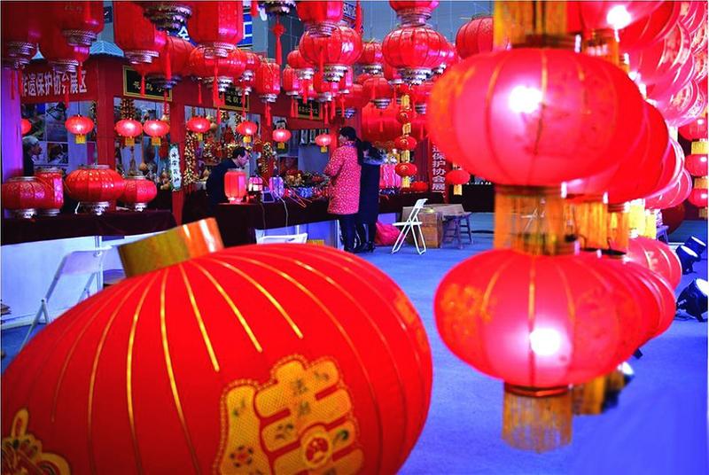 春节将至,不少西安市民来到第十八届西安年货节现场置办年货,喜迎新春。图为市民在西安年货节上选购灯笼。
