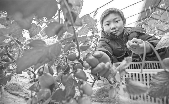 近日,10岁的赵晨博在位于礼泉县烽火镇的陕西嘴巴公社现代农业有限公司的大棚里采摘圣女果。该公司通过种植养殖相结合,不仅实现养殖废弃物零排放,培育出的水果也颇受消费者欢迎。目前,该公司实现年出栏生猪1万余头,50座蔬菜、水果大棚坚持发展无公害食品,探索出一条养殖、种植协同发展的生态循环之路。