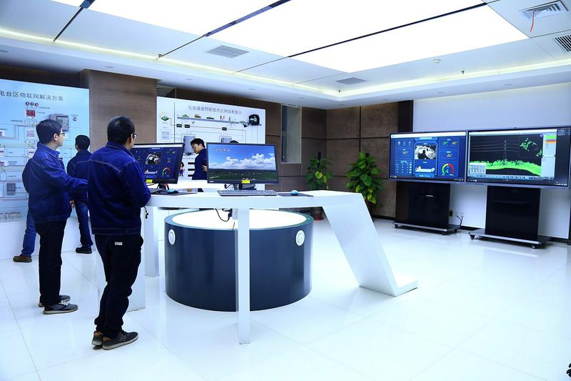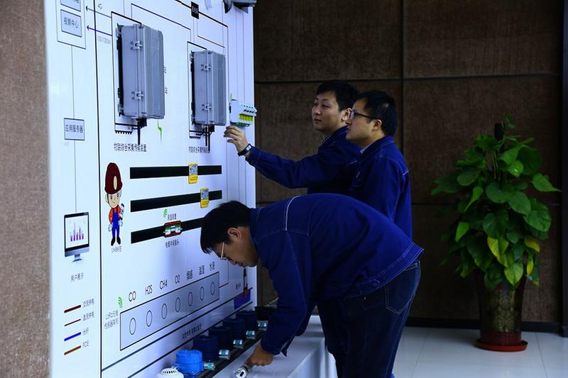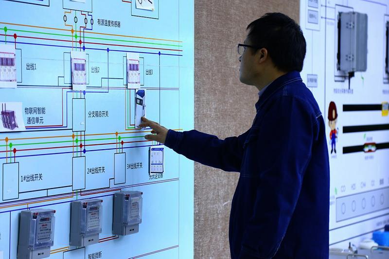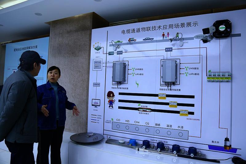 陕西省泛在电力物联网工程研究中心工作人员在展厅内试运行系统