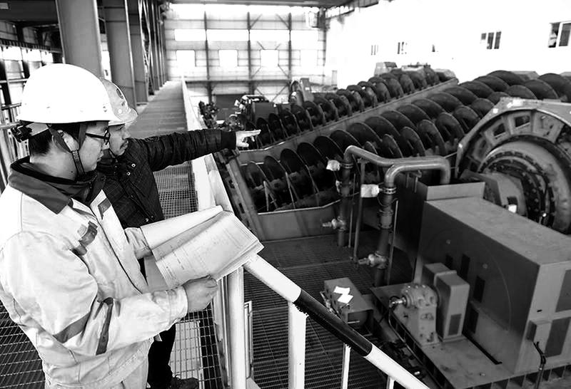 潼关县潼金公司中心选矿厂是渭南市中西部资源整合及深部地质探矿项目的重要组成部分,项目包括选矿厂、尾矿库和主提升系统三部分,总投资5.85亿元。目前,选矿厂、车间已建成,设备已安装到位,正在完善厂区绿化、亮化、硬化等配套设施。预计完全建成后,将年产黄金2.9吨,实现产值7亿元,新增就业1000余人。图为工人正在进行设备调试。