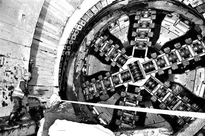工作人员在过海地铁隧道掘进作业现场拉起警戒线