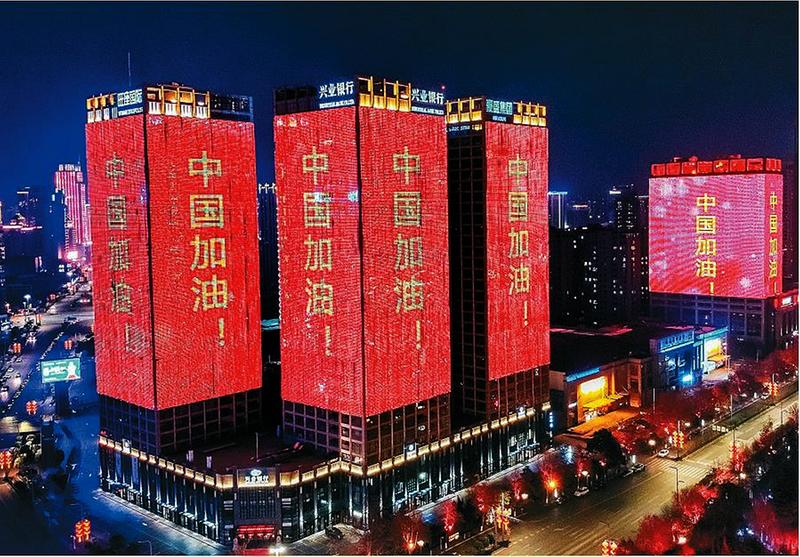 新冠肺炎疫情来势汹汹,武汉牵动着全国人民的心。2月8日19时,西安高新区唐延路、嘉会坊等区域的12幢建筑醒目地亮起了一句振奋人心的宣传标语“武汉加油!中国加油!”。简洁有力的8个字,代表着每一个中国人合力战“疫”的决心,也代表着大家的美好希望和祝愿。在这个特殊的上元佳节夜幕中,温暖着每个西安人的心。