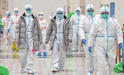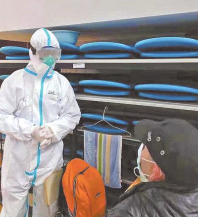 图4:2月5日,在武汉江汉方舱医院,医护人员在做准备工作。熊琦 摄