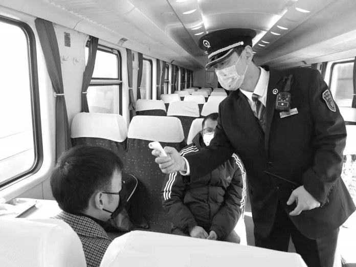 为做好复产复工返程运输疫情防控工作,西安局集团公司根据客流变化科学安排运力,加大站车通风消毒保洁力度,对车厢环境定时消毒和通风。严格落实出乘、退乘人员测温登记筛查,实时监控站车工作人员体温和身体状况。配合地方做好发热旅客防控筛查,加强出站组织,避免人员聚集,尽最大努力降低返程运输疫情传播风险。