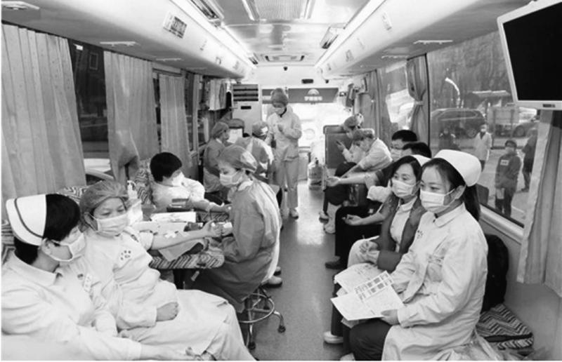 近段时间,受新冠肺炎疫情影响,献血人数骤减,血液库存持续告急。2月24日,陕西中医药大学附属医院向全院教职工发出“献热血、战疫情”倡议,短短半天时间,百余名医护人员响应号召踊跃献血,献血总量超30000毫升。图为医护人员组团献血。