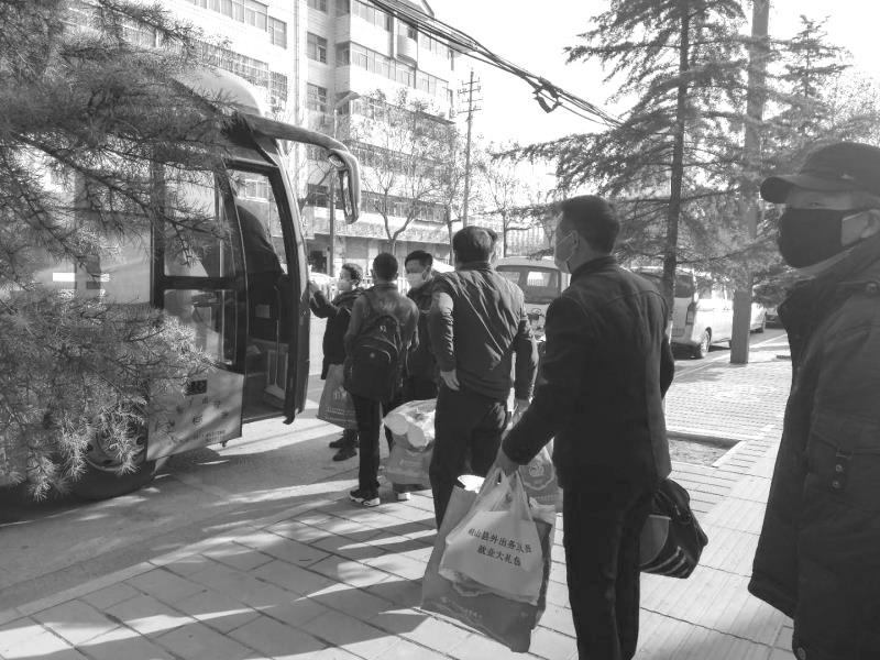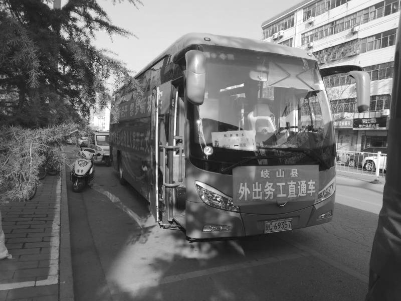 2月24日上午,岐山县凤鸣镇董家台村村民刘银军兴奋不已,他与32名农民工一起,坐上了免费的农民返岗“直通车”,前往西安复工。
