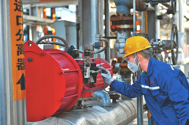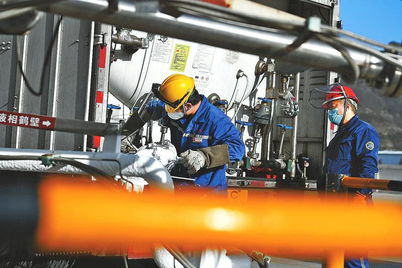 随着复工复产的全面推进,延长石油天然气有限责任公司安塞LNG站在全力做好疫情防控的同时,日产由2月初降量维持生产的40万方,恢复到目前的100万方,全力保障山西、湖南、湖北等省份的市场供应。上图为工人正在给运输车辆装载液化气;右图为工人正在查看设备运行情况。