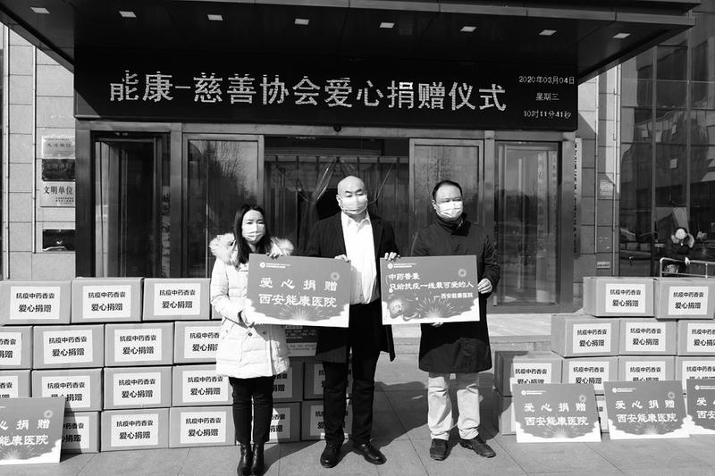 3月4日早10点,西安雁塔能康中西医结合医院在门诊医技楼前,将价值超过10万的预防流感中药香囊捐赠给了陕西省慈善协会志愿者分会(总队),由分会(总队)20支志愿者代表分别接受了捐赠。