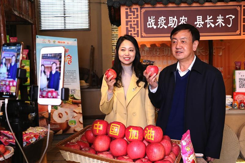 3月11日下午15时至18时,宜川县委书记左怀理走进宜川农特产品体验店,化身“主播”在今日头条、抖音、西瓜视频进行“战疫助农县长来了”直播,推介销售延安苹果、壶口酥梨、“大红袍”花椒和宜川稠酒等农产品。延安市副市长杨光远也受邀来到直播现场,助力宜川农产品直播销售,并通过直播平台与网友们进行了互动,现场抽取了幸运观众。