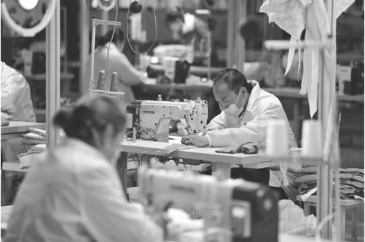 柞水县在严格抓好疫情防控的同时,正在有序推进企业复工复产,让贫困群众就地就近就业,确保搬迁群众产业发展有依托、稳定就业有平台,实现“能发展、可致富”。截至目前,该县累计培育就业扶贫基地21个,认定社区工厂18家,带动贫困劳动力就近就地就业2200余人。图为工人们在生产线上认真作业。