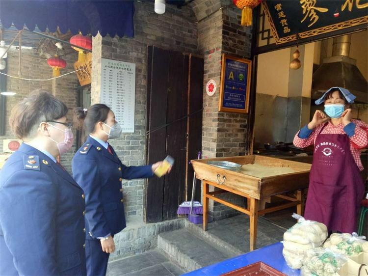 春风送暖、万物复苏,随着抗“疫”好消息的不断传来,全国多地景区陆续恢复开放,礼泉县袁家村旅游景区也于近日对外全面开放,各类经营户陆续恢复营业。为确保疫情防控工作落实,助力景区复工复产有序推进,礼泉县市场监管局深入袁家村旅游景区开展检查,指导经营户有序恢复生产经营活动。