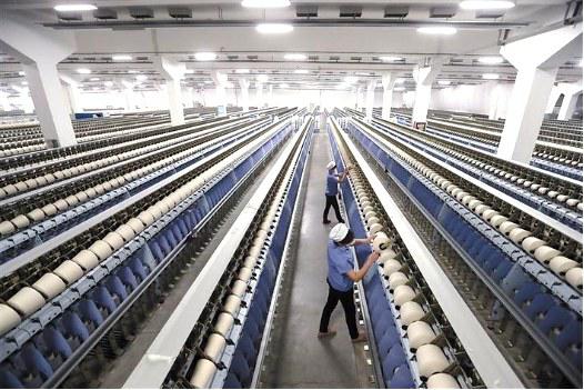 目前,西纺集团复工率达100%,产销率完成100%,复工至今实现产值3500万元。图为筒并捻车间值车工在进行巡回检查。