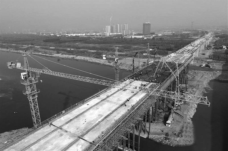 近日,由中铁五局承建的银(川)西(安)高铁陕西段咸阳渭河四线桥合龙,为全线通车奠定基础。银西高铁是国家中长期铁路网规划中“八纵八横”高铁网包(银)海通道的重要组成部分,预计2020年底开通。图为银西高铁陕西渭河四线桥施工现场。
