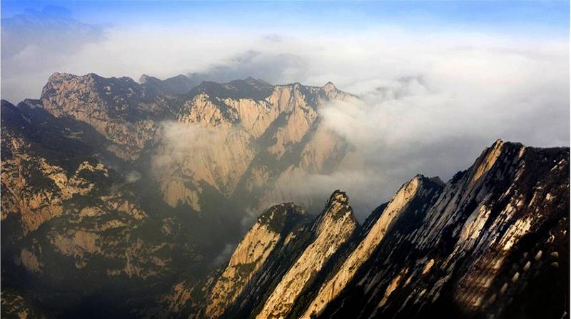 位于陕西省华阴市的西岳华山,被称为“奇险天下第一山”。据了解,华山将于4月11日起恢复开放,每日最大游览接待量不超过6000人。图为云雾缭绕的华山。