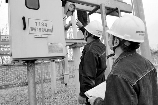 4月11日,该公司变电运维人员在110千伏贾曲变电站贾桥II开关机构箱前,检查六氟化硫压力指数表。为保障变电站设备平稳运行,该公司变电运维专业启动“大风特巡”专项保电行动,对辖区98座变电站进行特巡,检查和清理变电站设备区、围墙、电子围栏上的杂物以及漂浮物。
