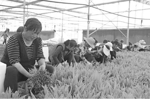 近日,在西安市蓝田县普化镇楸树庙村的钢架连栋温室大棚里,工作人员正忙着采收白芨苗。目前,该村四十亩白芨苗正在进行移栽。