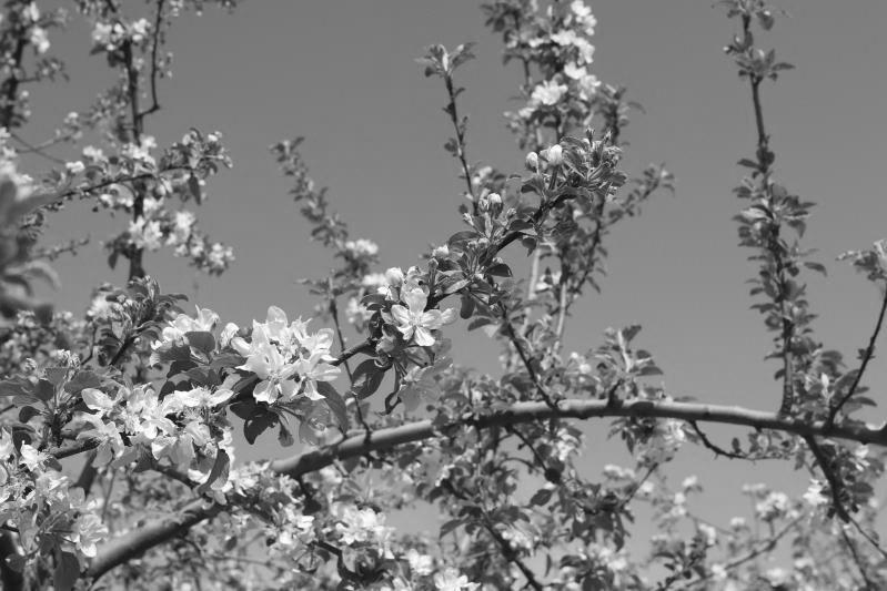 4月17日,在羊泉镇陈超村,映入眼帘的是漫山遍野的乳白色苹果花,间或有未开的花苞粉嫩地点缀其中,花间的蜜蜂也不忍浪费了这盛放的鲜花,灵活地穿插在枝杈间,调皮地将苹果花粉裹满全身。