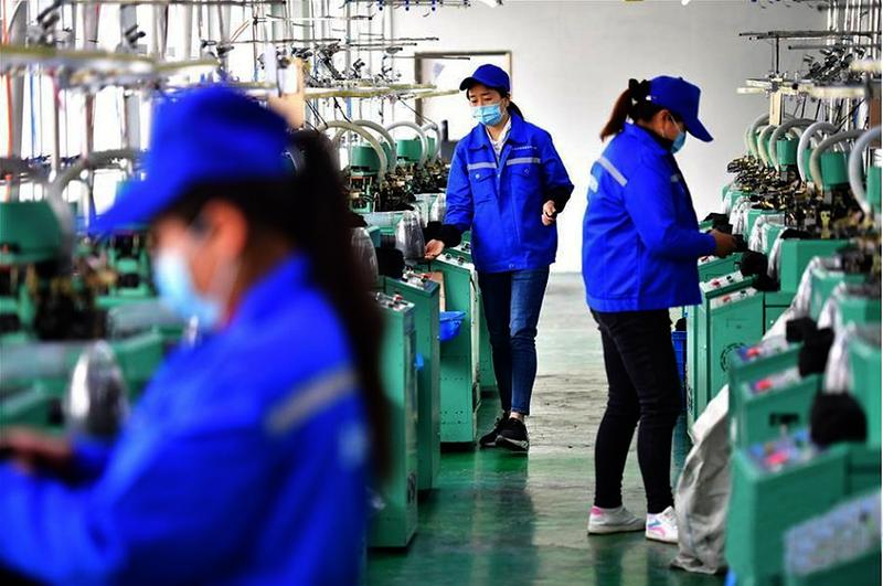 近年来,安康市平利县老县镇着力推动易地扶贫搬迁建设,积极发展社区工厂、农业产业,促使居民稳定就业,脱贫增收。同时,该镇教育、医疗等社区服务功能不断完善,使群众生活有了更好的保障。图为该县老县镇锦屏社区的社区工厂,工人在加工袜子。