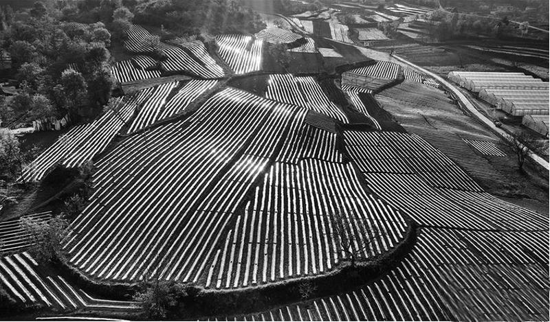 日前,在秦岭深处的陕西省商洛市洛南县的多个乡镇,当地群众用可降解塑料薄膜覆盖种植辣椒、烤烟等作物,呈现出一道道美丽的地膜田园风光。图为该县石门镇拍摄的地膜田园风光。