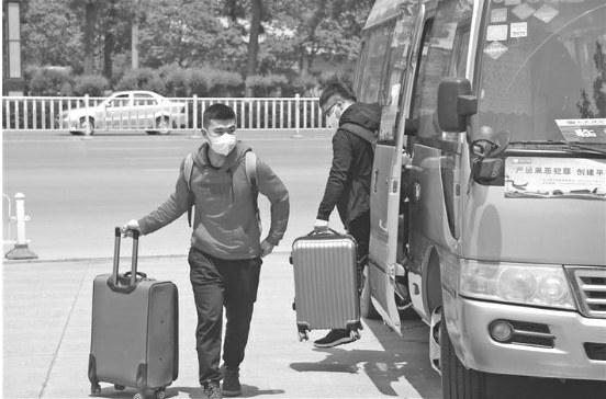4月28日,西安科技大学首批70名学生顺利返校。为确保2020年春季学期返校开学工作安全、平稳、有序进行,西安科技大学通过“线上+线下”培训的形式,提高师生重点传染病疫情应急处置能力,并多次邀请陕西省疾控中心专家为全校师生做新冠肺炎疫情防控和个人防护知识培训,确保防控知识和要求人人尽知。图为西安科技大学返校同学从机场、长途车站接回临潼校区。