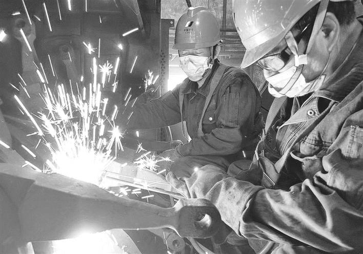 近日,地处彬州市的陕西某发电有限公司在做好疫情防控的同时,加班加点进行设备检修,确保居民正常安全用电。图为检修人员正在进行焊接作业。