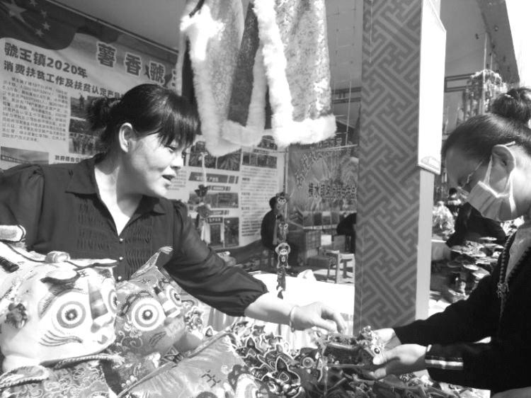 “我们的刺绣产品都是一针一线纯手工制作,质量么麻达!你看这个小娃戴的帽圈,上面绣的老虎寓意吉祥尊贵,能驱邪避灾。”4月29日一大早,在凤翔县举办的首次消费扶贫展销会上,记者看到田建荣正在展位前忙着向顾客推销自家合作社制作的手工艺品。不一会功夫,就卖出了七八件幼儿老虎帽、小布鞋和枕头等物件。
