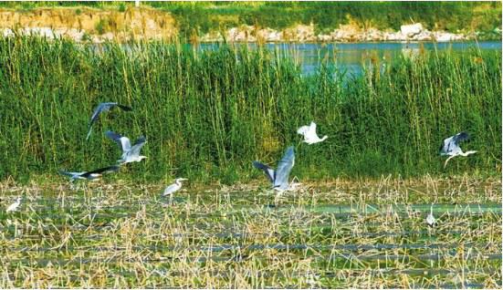 合阳黄河湿地自然保护区是黄河流域面积最大的河滨湿地,芦苇茂密,鸟儿飞翔,自然风景别致。近几年,渭南市合阳县加大环境治理、生态修复力度,湿地和野生动植物保护工作得到全面加强,使黄河湿地成为鸟儿的天堂。