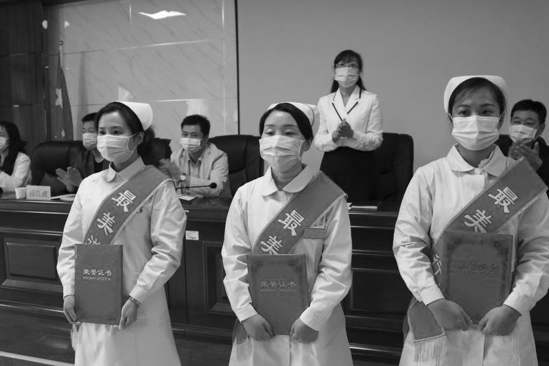 会议对3名援鄂护士授予“最美逆行者”荣誉称号并进行了表彰,对41名“战疫最美护士”和7个“优质护理先进病区”进行颁奖;2名最美护士代表进行了交流发言。